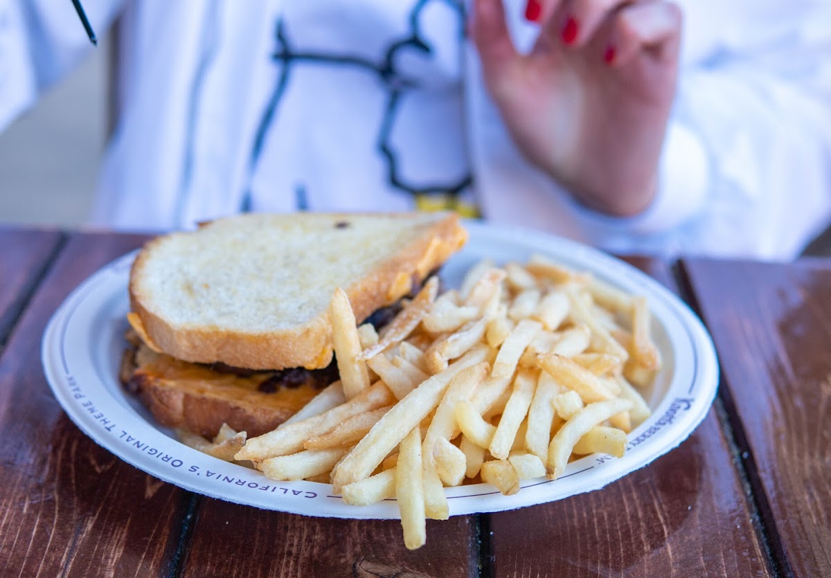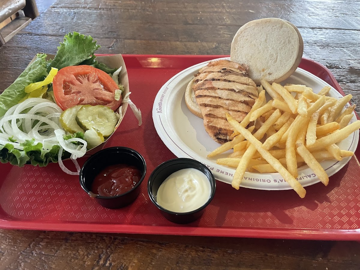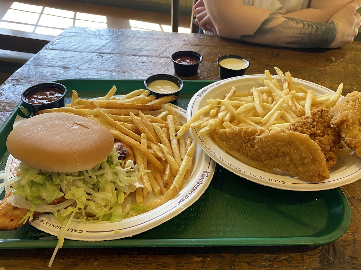 We like to get breakfast here - they have what the call "breakfast melts". Choose from Bacon, Ham or veggie, I recommend the bacon melt. The melts consist of 2 half's of an English muffin (so 2 pieces), with an egg on each half - served as an open face sandwich, with a creamy sauce and melted cheese. They are delicious. You also get a side order - I normally get a side salad or Mac and cheese (M&C is BOMB here). My favorite part about this place, is that it is the only place in Knott's that has Jalapenos - they are in the self serve condiment bar, so I always SMOTHER my food in them, lol! Meal plan eligible.